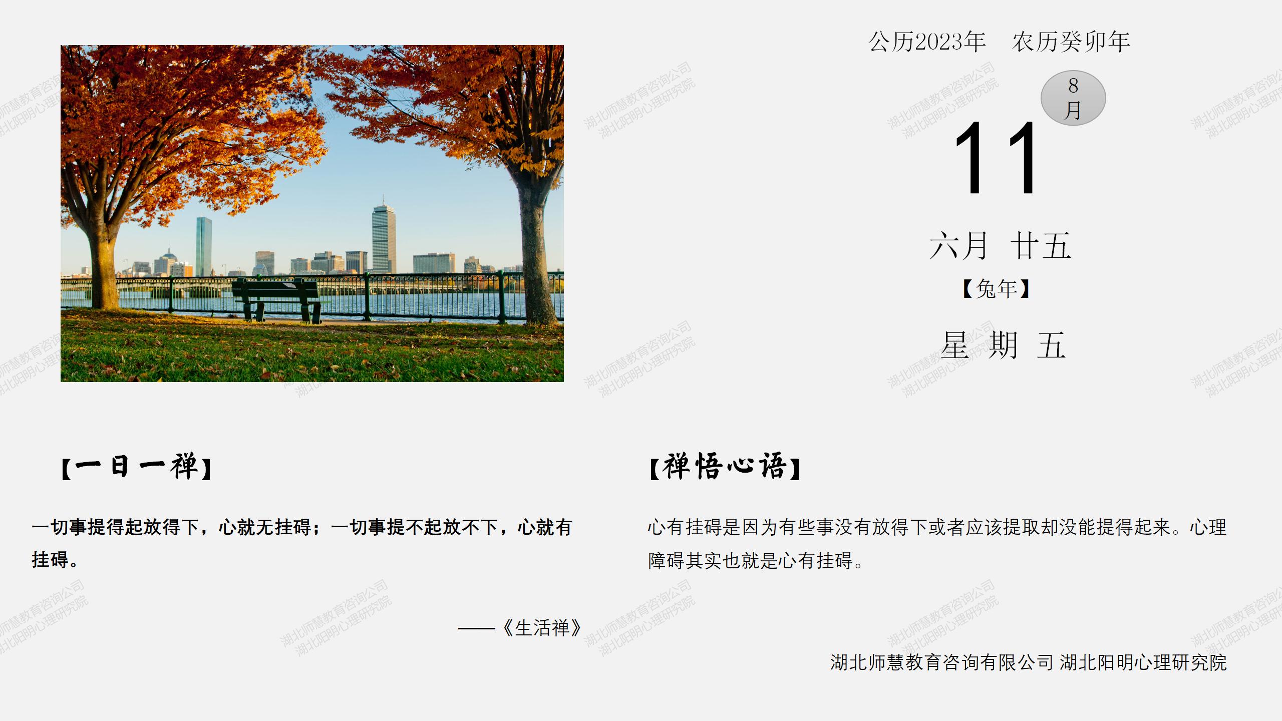【致良知】心理障碍其实也是心有挂碍 马恩祥 2 年前 阅读(1460) 评论(0) 【一日一禅】一切事提得起放得下,心就无挂碍;一切事提不起放不下,心就有挂碍。——《生活禅》【禅悟心语】心有挂碍是因为有些事没有放得下或者应该提取却没能提得起来。心理障碍其实也就是心有挂碍。——《师慧教育 阳明心理研究院》